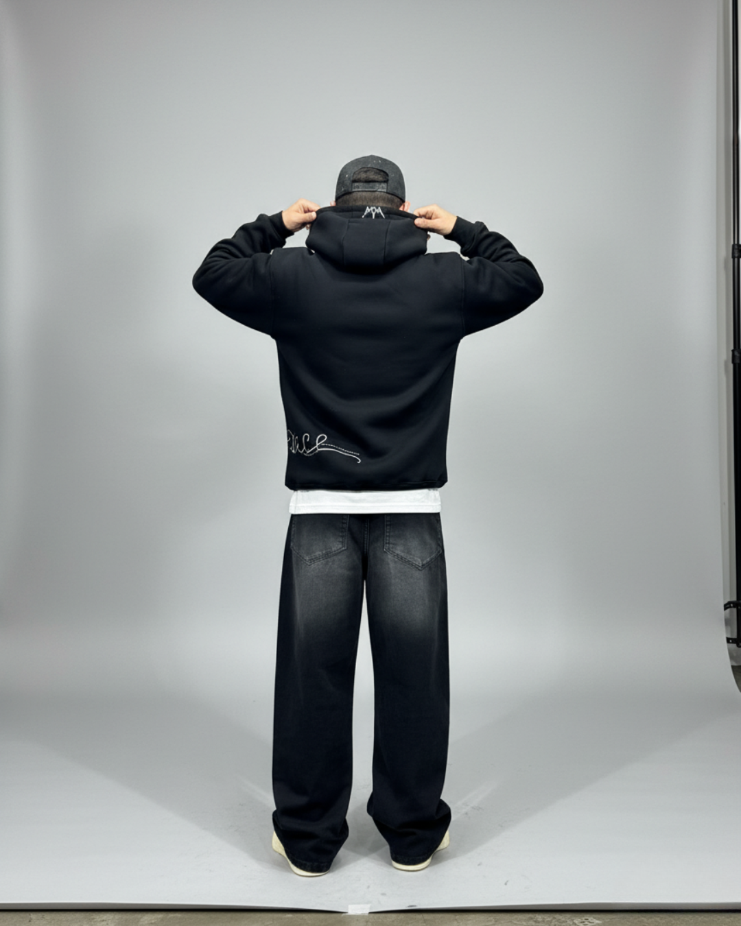 Capuche ajustée avec cordons solides pour un look street authentique.